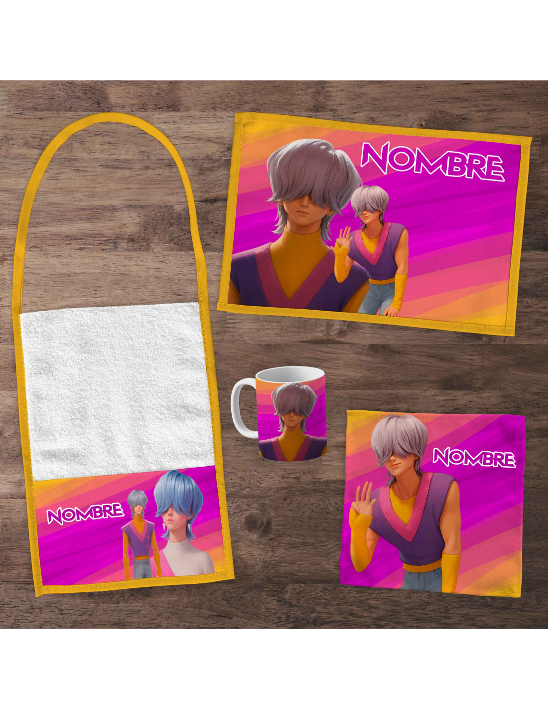 INCLUYE LA PLANTILLA PARA: *TAZA *INDIVIDUAL *TOALLA *SERVILLETA *CANTIMPLORA *TUPPER *MOCHILITA ADEMAS FONDO-DIBUJOS- LETRA PARA QUE LO ARMES EN LO QUE QUIERAS